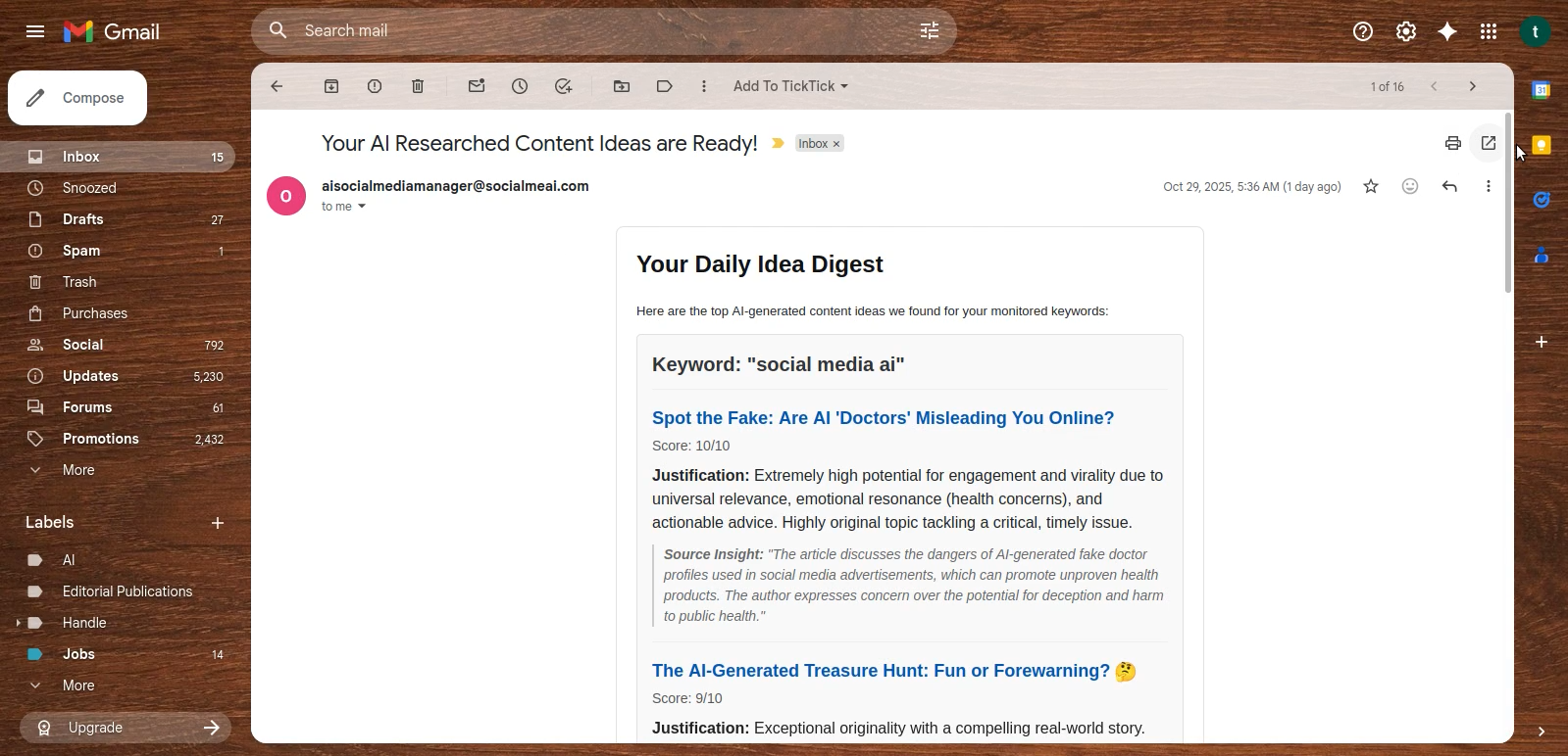 Stop staring at a blank screen. Let our AI become your 24/7 research assistant, automatically finding high-engagement social media content ideas and delivering them fresh to your inbox, every single day, that too for FREE.